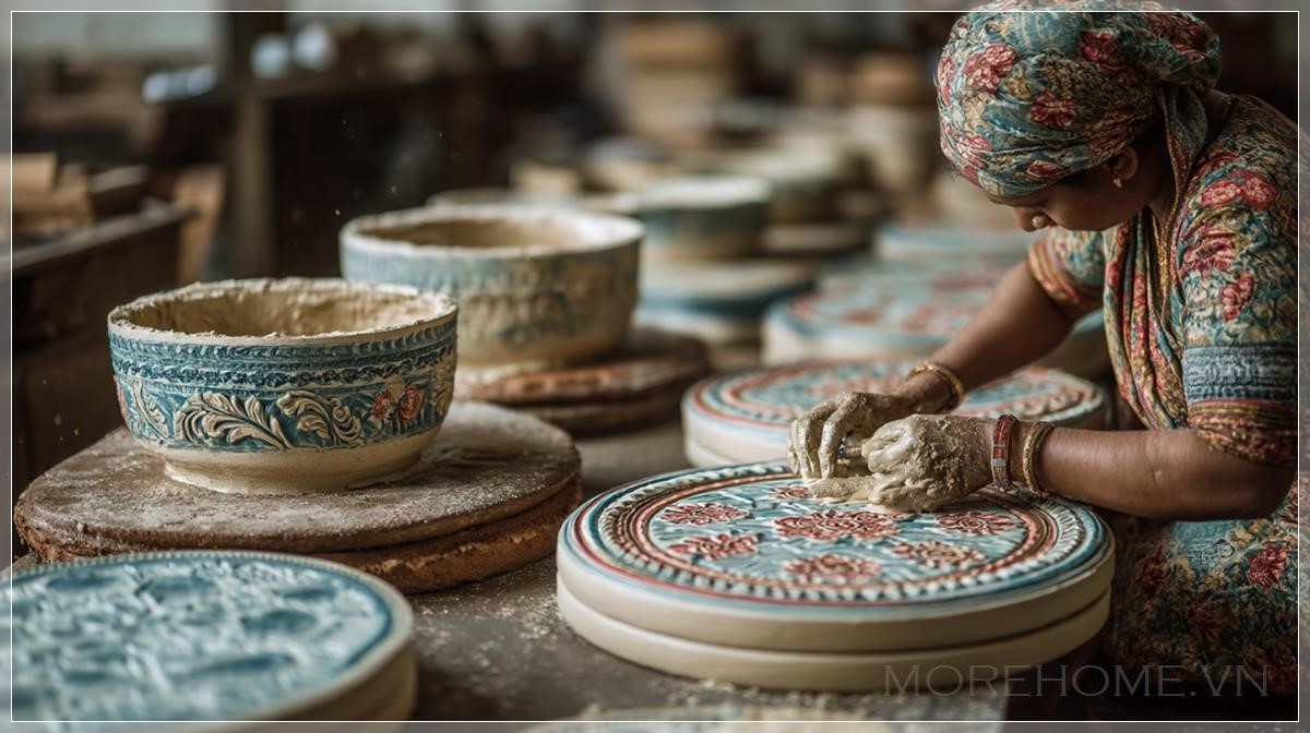 Quá trình chế tác một viên gạch Athangudi đòi hỏi sự kiên nhẫn và kỹ năng đã được truyền qua nhiều thế hệ. Từ việc pha trộn xi măng trắng với cát sông mịn, đến việc tạo màu từ những loại bột khoáng tự nhiên như oxit sắt đỏ, bột đá xanh, và than hoạt tính - mỗi bước đều mang dấu ấn của bàn tay nghệ nhân. Họ không sử dụng máy móc hiện đại, mà dựa vào kinh nghiệm và trực giác để tạo ra những tác phẩm hoàn hảo.