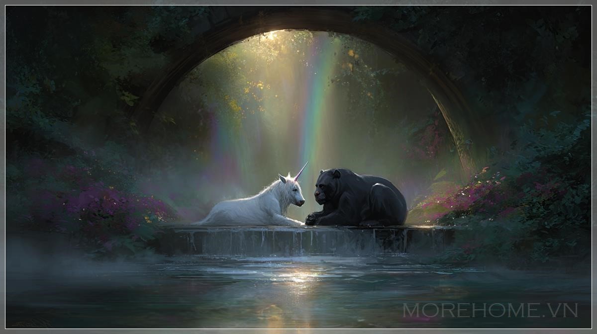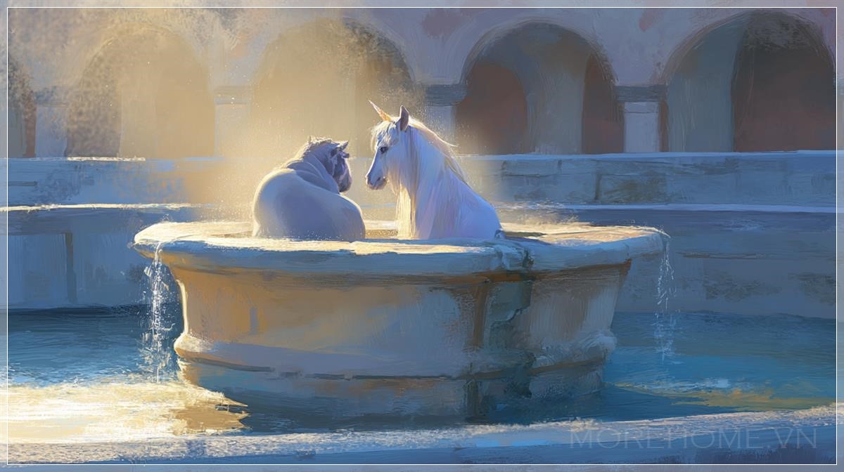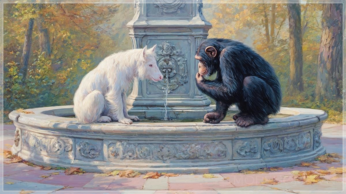 Trong thế giới động vật, đôi khi chúng ta bắt gặp những khoảnh khắc kỳ diệu và đầy tính nghệ thuật, như khi các loài động vật giao tiếp với nhau trong không gian thiên nhiên tươi đẹp. Một bức tranh tuyệt đẹp mô tả cảnh tượng chim hoàng yến, gấu mèo, và khỉ đột trò chuyện bên đài phun nước trong vườn thú, không chỉ là một tác phẩm nghệ thuật mà còn là một bức tranh phong cảnh sống động. Được vẽ theo phong cách của danh họa Aivazovsky, tác phẩm này mang đến sự hòa hợp tuyệt vời giữa động vật và thiên nhiên, một cảnh tượng gợi mở sự kết nối sâu sắc giữa con người và thế giới xung quanh. Sử dụng bảng màu nhẹ nhàng, thiên về sắc trắng và tự nhiên, khung cảnh này không chỉ mang lại sự thư giãn mà còn khơi gợi một cảm giác bình yên khó tả.