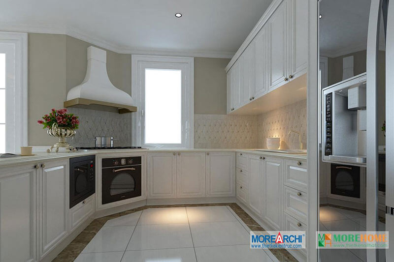 Thiết kế nội thất phòng bếp biệt thự tân cổ điển sang trọng và tiện nghi