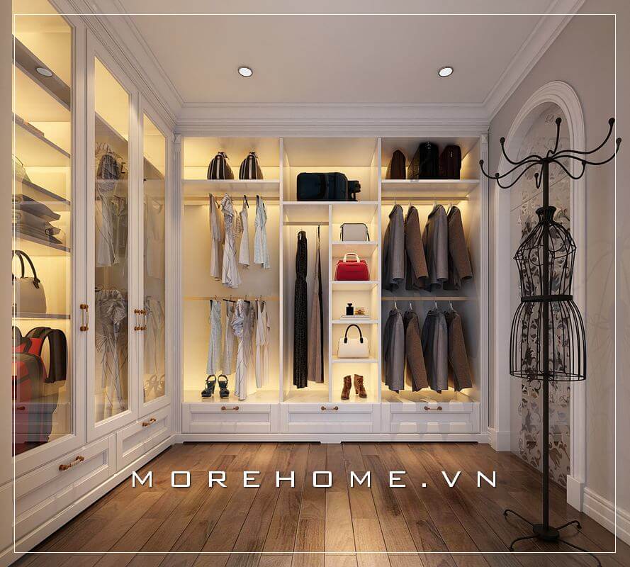 Morehome gợi ý đến bạn mẫu tủ quần áo phòng ngủ biệt thự phong cách tân cổ điển đầy sang trọng
