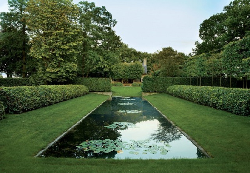 Ngoài chiếc hồ nhỏ ở giữa thì bạn sẽ chỉ nhìn thấy một màu xanh lá cây ngập tràn trong không gian tuyệt vời này. Những hàng cây thẳng tắp, cao đồng đều, những thảm cỏ xanh rì hay cả một dàn dây leo trên mái nhà xa xa… đã tạo nên một khung cảnh lãng mạn và trong lành.
