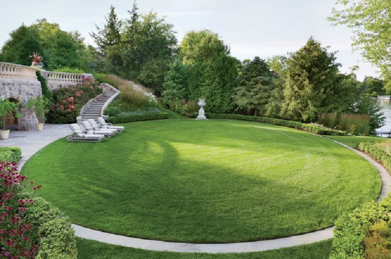 Thiết kế biệt thự muốn đẹp thì thiết kế ngoại thất của nó cũng phải thật ấn tượng. Và điều ấn tượng nhất trong thiết kế này là một khoảng sân cỏ hình tròn như mặt trăng được cắt tỉa cẩn thận.