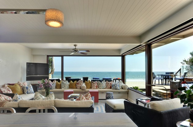 Phong cách Malibu này mang lại vẻ phóng khoáng cho căn biệt thự của bạn. Bạn có thể thấy được tối đa diện tích trong phòng khách sẽ dành cho sofa để bạn có thể nghỉ ngơi ngắm cảnh biển cũng như trò chuyện cùng mọi người trong gia đình.
