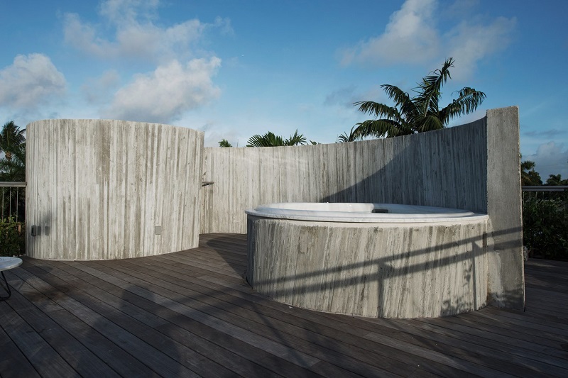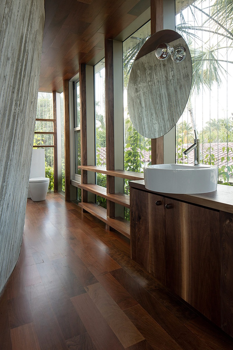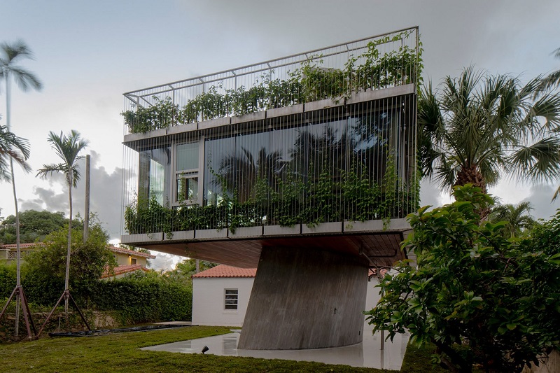Việc mở rộng lớp phủ cây trồng này lên một boongalô ở Miami được hỗ trợ bởi một lõi bê tông hình xoắn ốc đã được hiệu chuẩn chính xác để phù hợp với đường dẫn của mặt trời vào mùa hè.