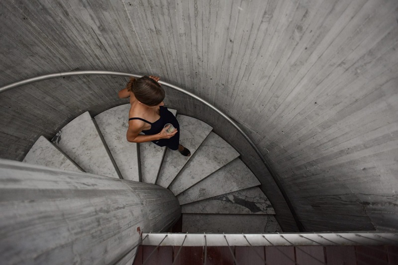 Lối cầu thang cong và dốc như hình xoắn ốc tạo nên một hiệu ứng thị giác độc đáo.